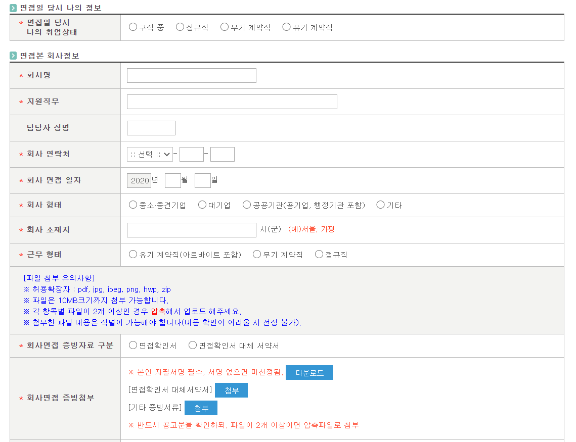 ※ 회사 면접 증빙자료로는 면접 확인서 or 면접 안내 문자&메일 등을 캡처해서 첨부하면 됩니다.