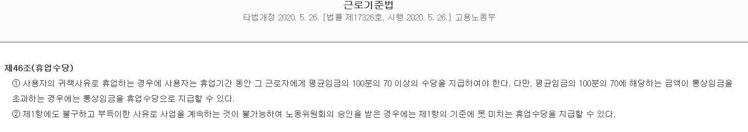 2) 무급휴업, 정부의 강제휴업조치는 사용자의 귀책사유가 아니다