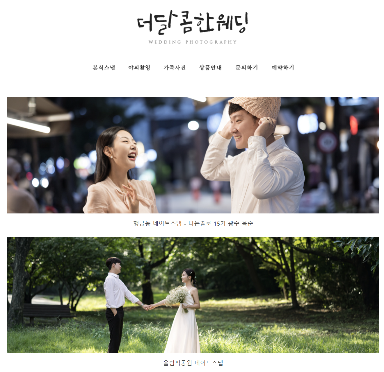 그리고 더 달콤한 웨딩 홈페이지의 야외촬영 사진 보시면 나는 솔로 15기 광수님&옥순님의 행궁동 데이트 스냅사진도 보실 수 있답니다ㅎㅎ