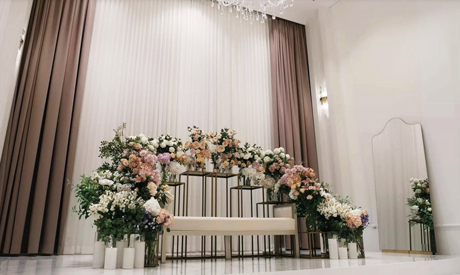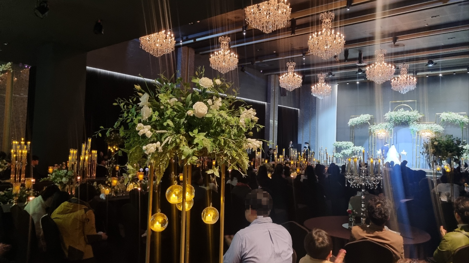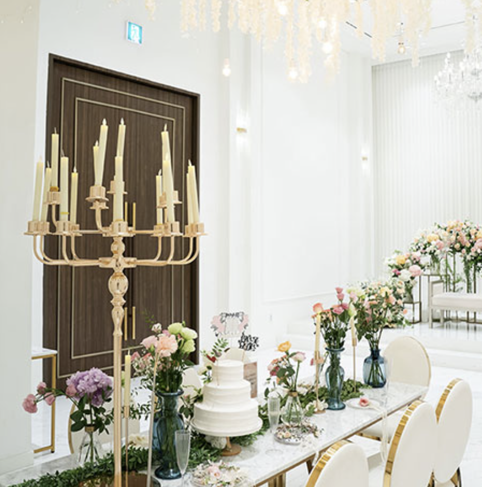 ③ 입장시에 샹들리에가 밑으로 내려와 더욱 오늘의 주인공을 돋보이게 만들어 줄 수 있게 만들어준다고 합니다! 샹들리에까지 내려온다는 디테일이 있는곳은 처음인거 같아요^^