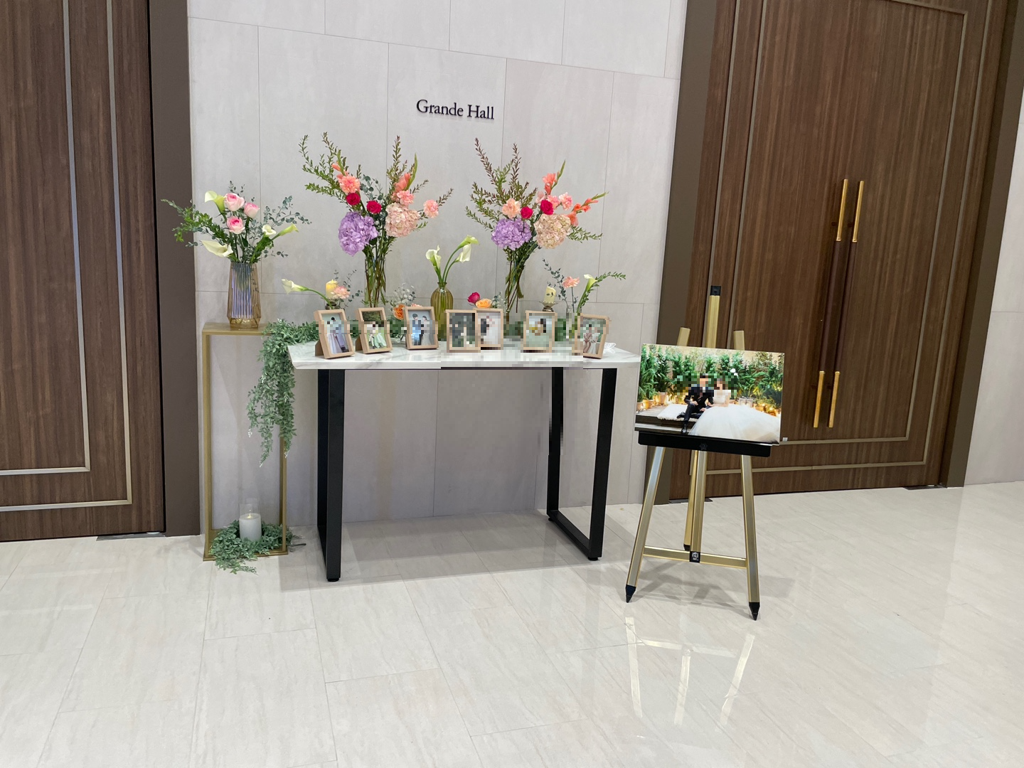그리고, 작게나마 생화가 장식한 포토존과 포토테이블도 너무나도 이쁘다는 거, 친구들 왔을때 저 앞에서 찍으면 좋겠다는 생각이 들었습니다. 신부대기실은 저보다 예비신부인 여자친구가 꼼꼼히 봤는데, 브라이덜샤워처럼 신부대기실에서 친구들과 같이 앉아서 찍는 곳도 있고 생화장식과 아기자기한 소품 배치들이 같이 사진 찍으신 분들도 기분 좋게 잘 찍고 가실 수 있을 거 같습니다!